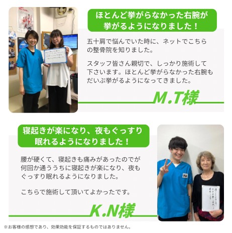 特に立ち方、座り方の指導は、日常生活の中で掛かる体への負担を軽減できるため、多くのお客様に変化を実感していただいています。